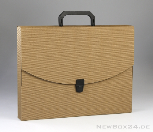 So verpacken Sie Ihre Unterlagen attraktiv in der Kofferverpackung aus Wellpappe. Die praktische Dokumententasche kann für Produkte oder Prospektmaterial genutzt werden. Wählen Sie aus verschiedenen Kartonvarianten Ihre Wunschfarbe.