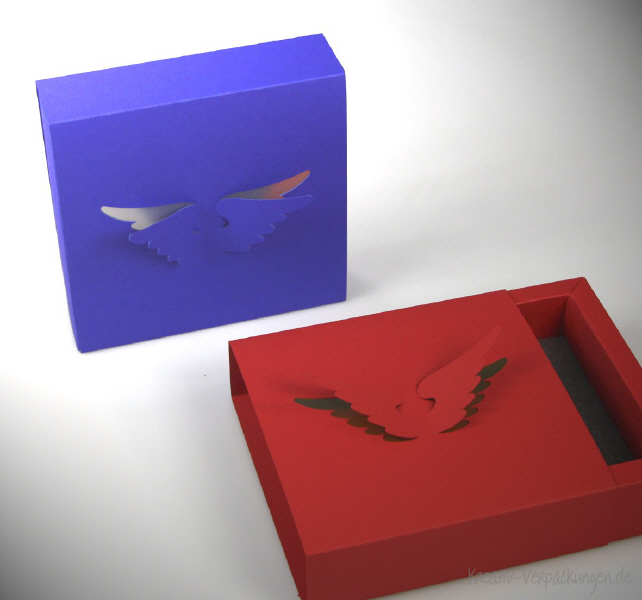 Lassen Sie Ihrer Fantasie freien Lauf: bei vielen unserer Geschenkverpackungen kann ein Motiv ausgestanzt und mit einem andersfarbigen Karton hinterlegt werden.