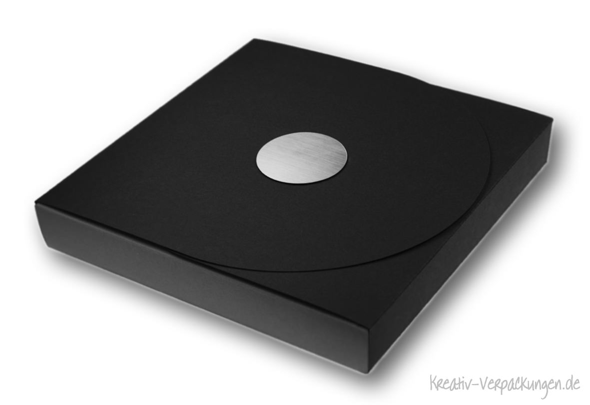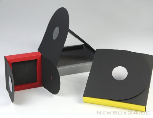 Die Exklusiv-Geschenkverpackung mit Klappverschluss: ähnlich einem Buchdeckel öffnen sich die beiden Seiten dieser Verpackung und geben den Inhalt frei. Dieser liegt geschützt auf einer Schaumstoffeinlage.