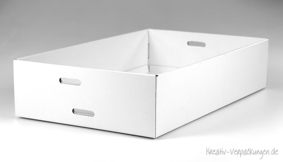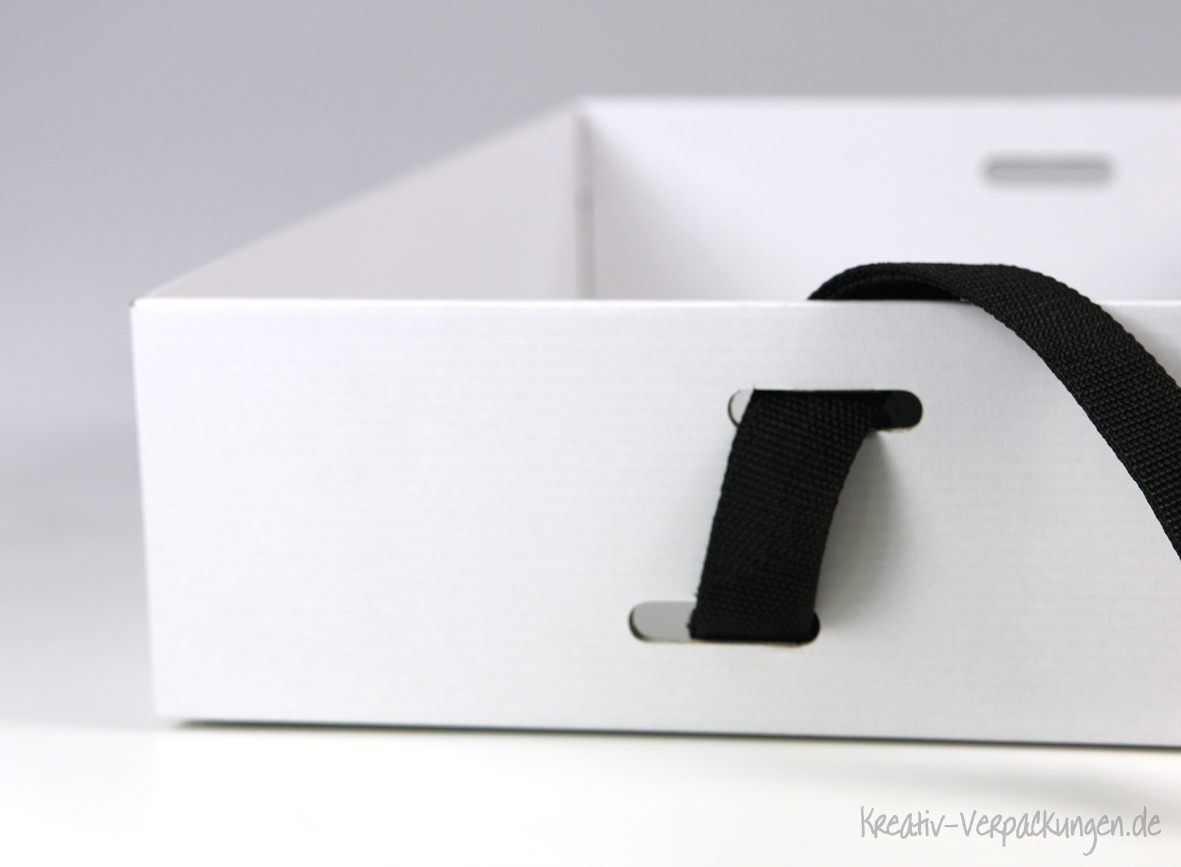 Hier haben wir einen ganz besonderen Kundenwunsch realisiert: einen Bauchladen aus Karton (E-Welle geschlossen) in weiß.