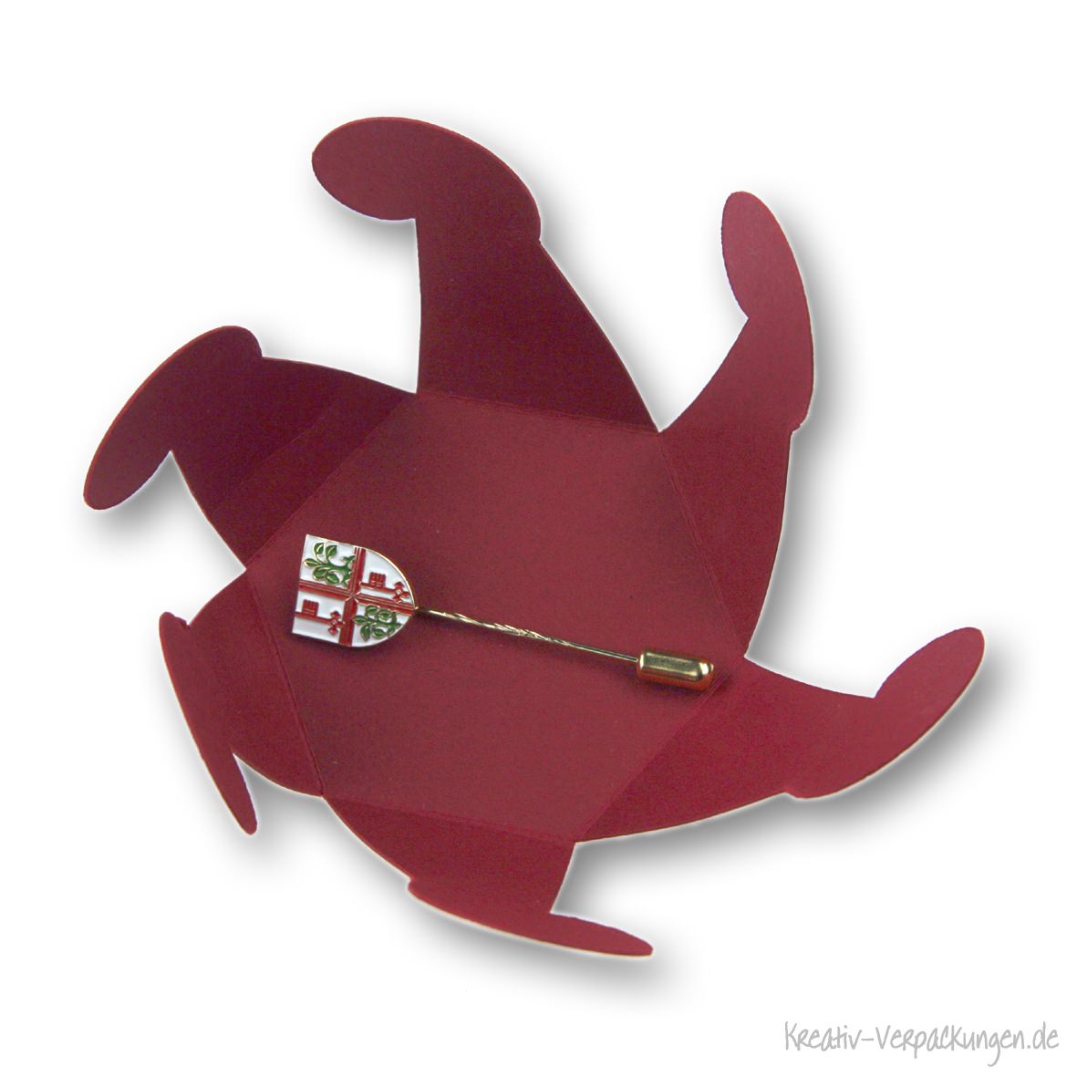 Diese Geschenkverpackung lässt sich wie eine Blüte öffnen und gibt den Blick auf die Ehrennadel frei.