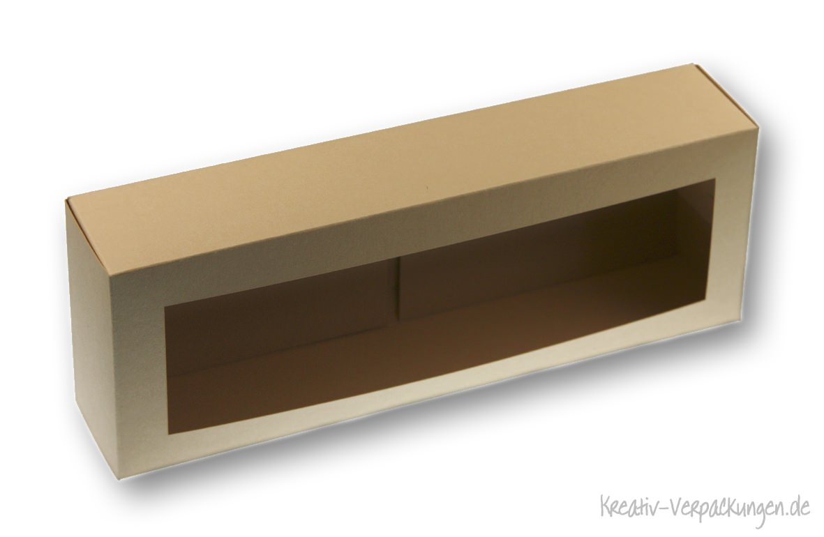 Als Karton wurde die Farbe Nr. 11 chamois verwendet. Die Maße sind: 210 x 80 x 42 mm (LxBxH).