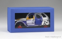 Die Klarsichtverpackung in der Größe 180 x 90 x 90 mm (LxBxH) gewährt freien Einblick auf alle Seiten des Modellautos.