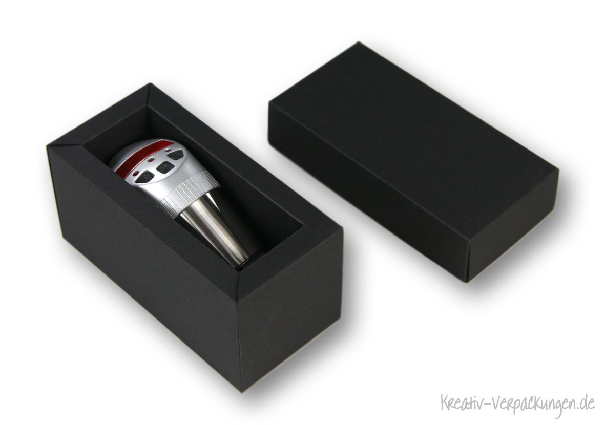 Hier ein Beispiel einer exklusiven Geschenkverpackung für ein Tintenfass mit Federn.