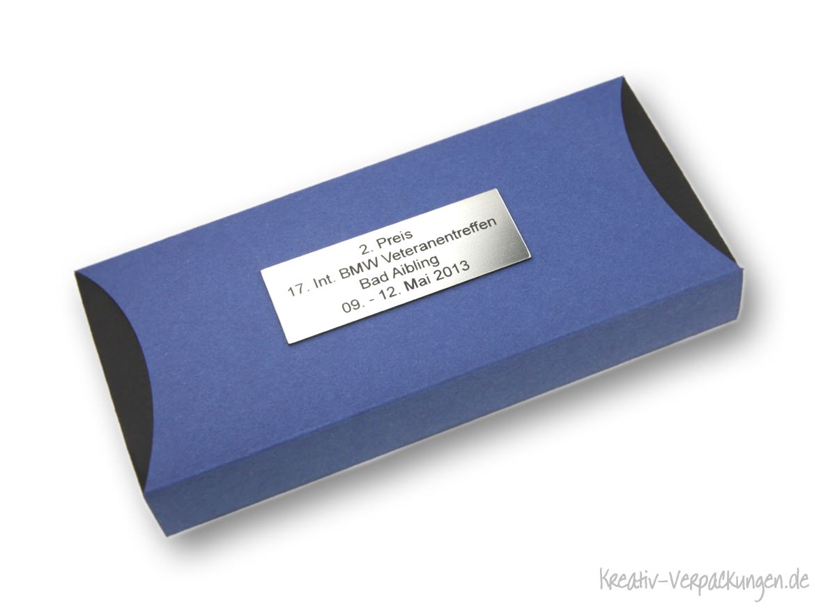 Hübsch verpackt zum Überreichen liegt es sicher auf einer passgenauen Kartoneinlage in der NewBox24.de Schiebebox aus blauem Karton.