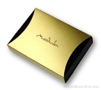 Gravur einer Schiebe-Geschenkbox aus Karton mit einer goldfarbenen Halbmond-Schiebehülle.