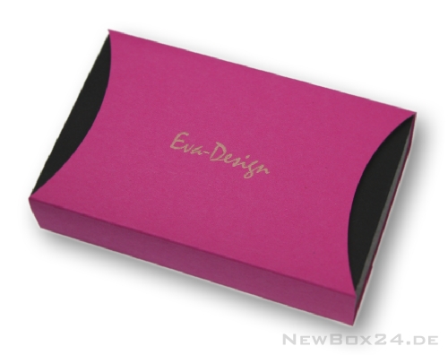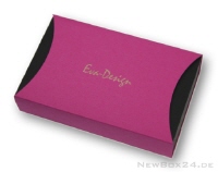 Gravur einer Schiebe-Geschenkbox aus Karton mit einer pinkfarbenen Halbmond-Schiebehülle.