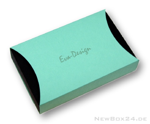 Gravur einer Schiebe-Geschenkbox aus Karton mit einer mintfarbenen Halbmond-Schiebehülle.