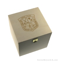 Auf Holzverpackungen bietet sich eine Logogravur oder eine Widmung an. Diese wird fühlbar in das Holz eingebrannt.